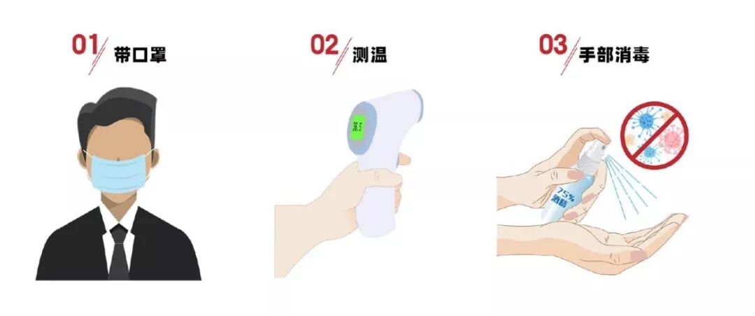 口罩、消毒、测体温