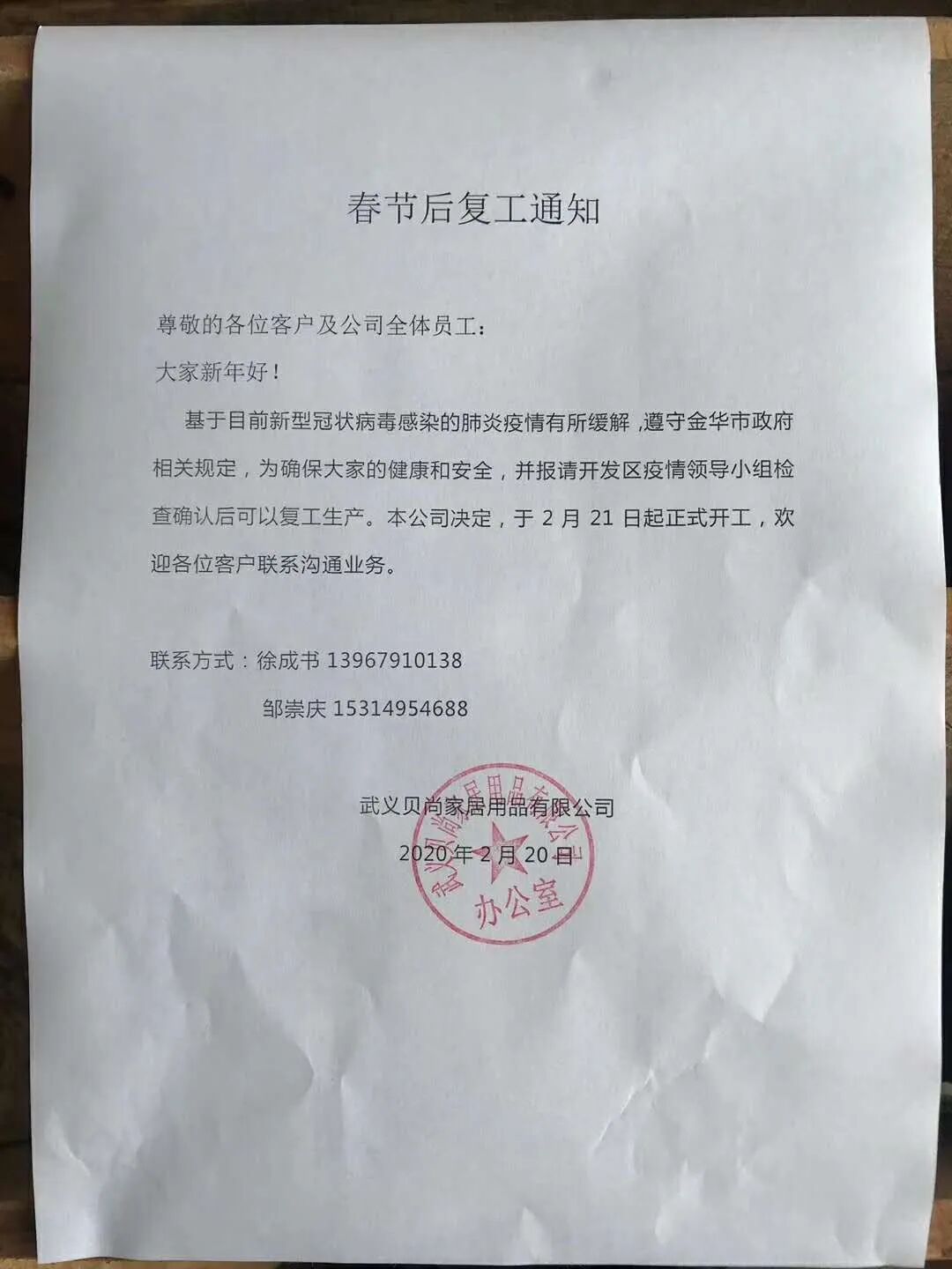 即日起贝尚家居已正式全面开工