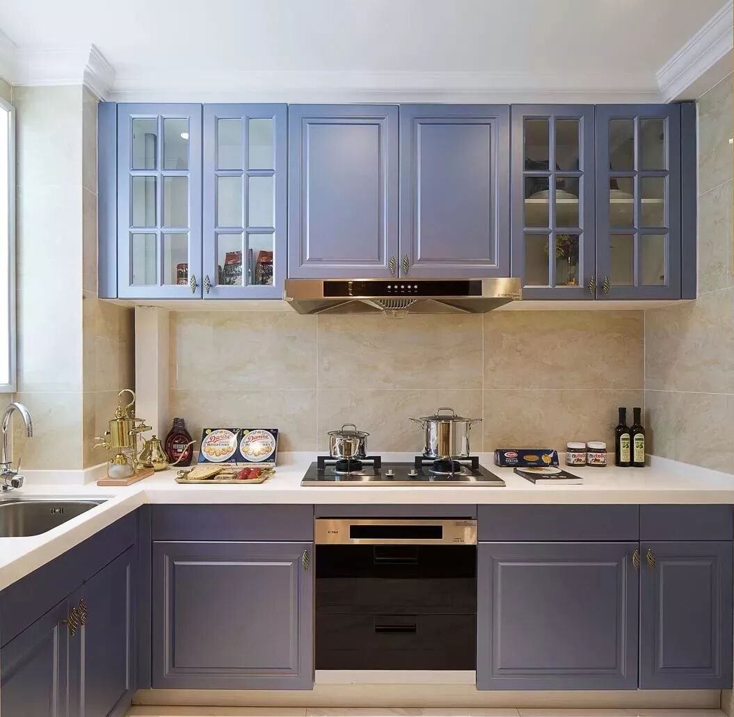 蓝色橱柜也很常见,但绝不是辣眼睛的荧光蓝,而是深蓝、蒂芙尼蓝,浅蓝,这些都是适合橱柜的颜色。