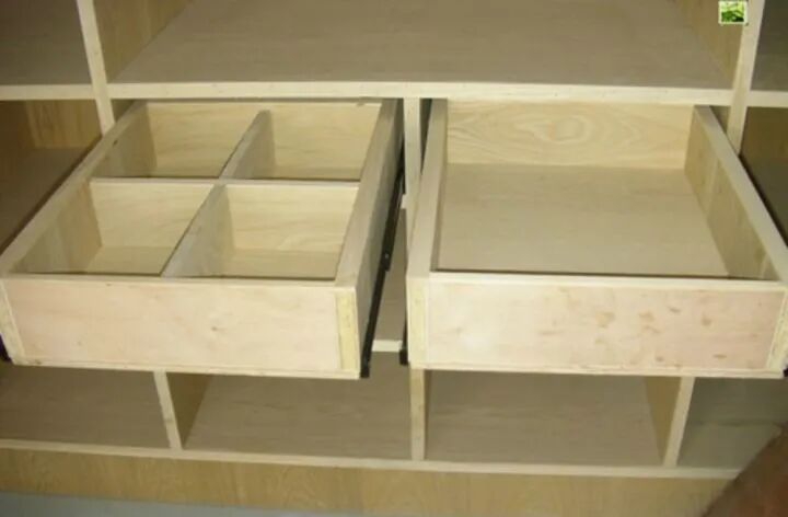 另外一个就是抽屉。抽屉分两种,一个是标准的大抽屉,这个多做一点是有好处的,因为它里面无论是放衣服还是放小的盒子,都是可以达到非常不错的使用功能的。